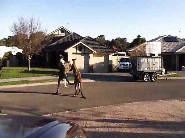 BAGARRE DE DEUX KANGOUROUS DANS UNE RUE EN AUSTRALIE