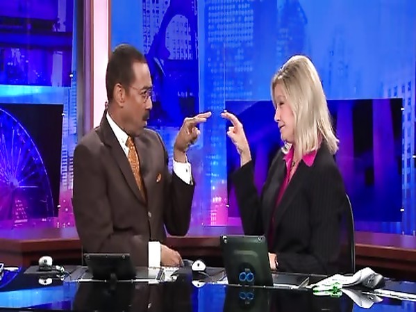 DEUX PRÉSENTATEURS D'UN JOURNAL TV S'OCCUPENT PENDANT LA PUB