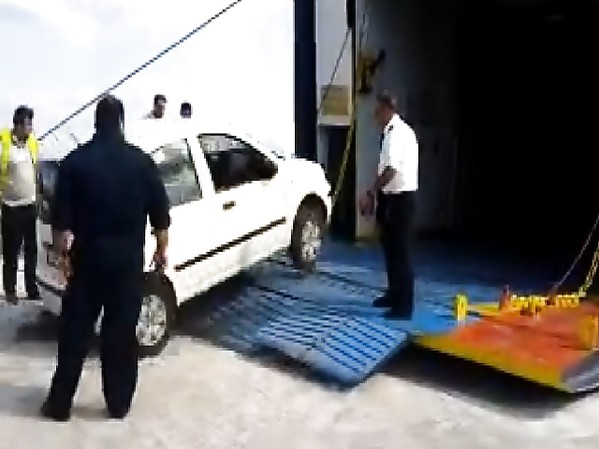 VOITURES EMBARQUENT DIFFICILEMENT DANS UN FERRY