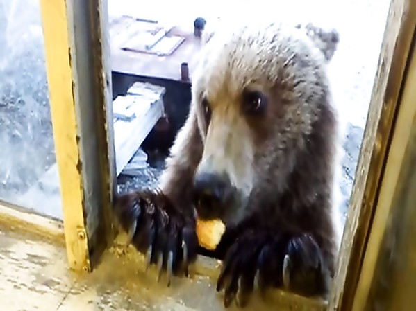 OURS RUSSE QUÉMANDE À MANGER À LA FENÊTRE (CUTE)
