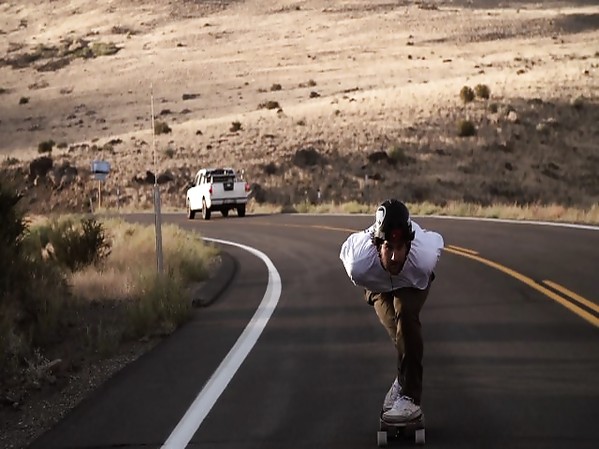 JAMES KELLY FAIT UNE DESCENTE EN LONGBOARD DANS LE SIERRA NEVADA EN CALIFORNIE