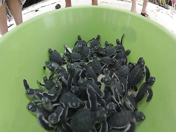 150 BÉBÉS TORTUES FONT LEUR PREMIÈRE BAIGNADE EN MALAISIE