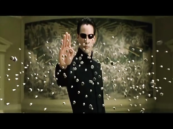 SCÈNE DE MATRIX AVEC DES BRUITAGES 8 BITS DE JEU VIDÉO