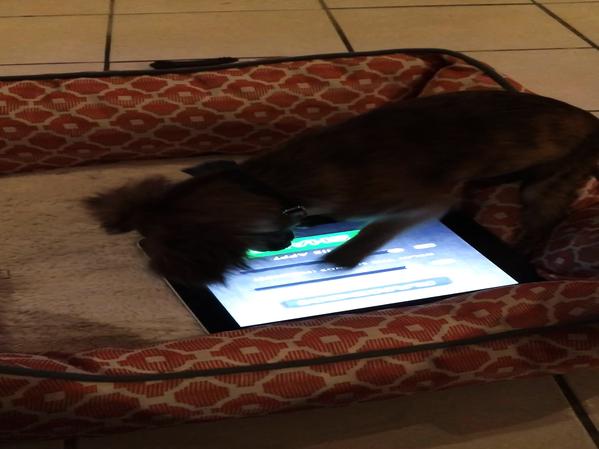 CHIOT S'EXCITE SUR UNE TABLETTE