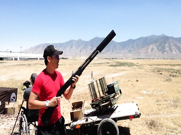IL TESTE UN SILENCIEUX POUR UN FUSIL SEMI-AUTOMATIQUE