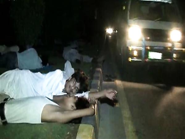 CHALEUR ÉTOUFFANT QUI ATTEINT LES 45 DEGRÉS, LES HABITANTS N'HÉSITENT PAS, UNE FOIS LA NUIT TOMBÉE, À DORMIR DEHORS (PAKISTAN)