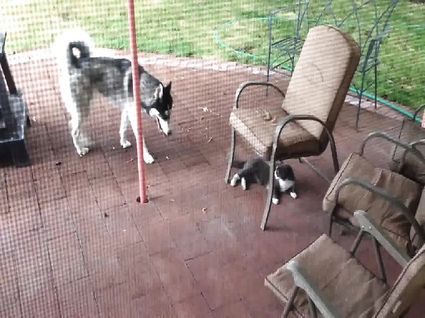 CHAT CHASSE UN CHIEN DE TRAINEAU