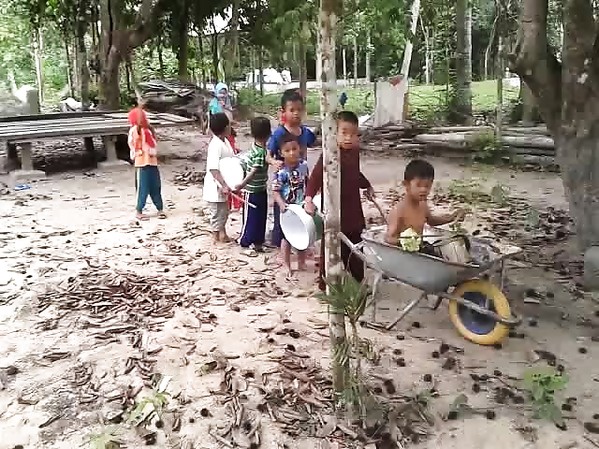 DÉFILÉ D'ENFANTS AVEC TAMBOURS ET SEAUX