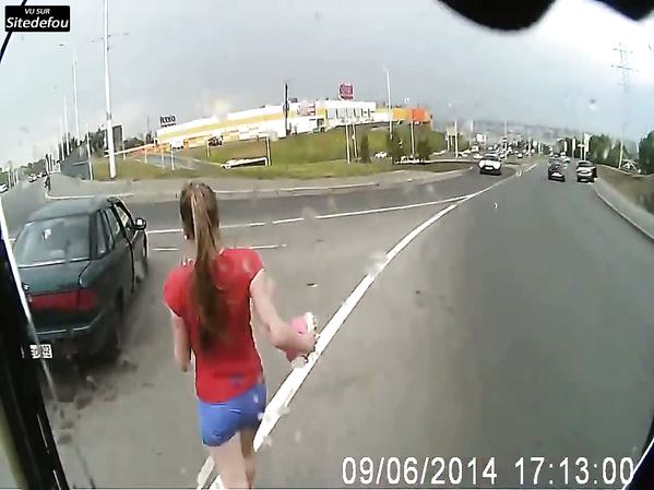 FEMME CHANCEUSE ÉVITE DE SE FAIRE ÉCRASER DE JUSTESSE
