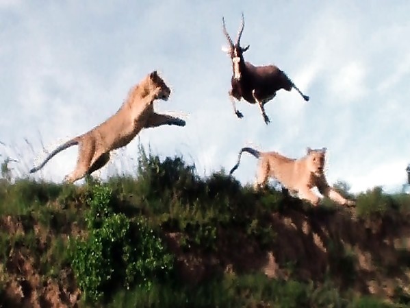 LIONNE CHASSE UNE ANTILOPE DANS LES AIRS (IMPRESSIONNANT)