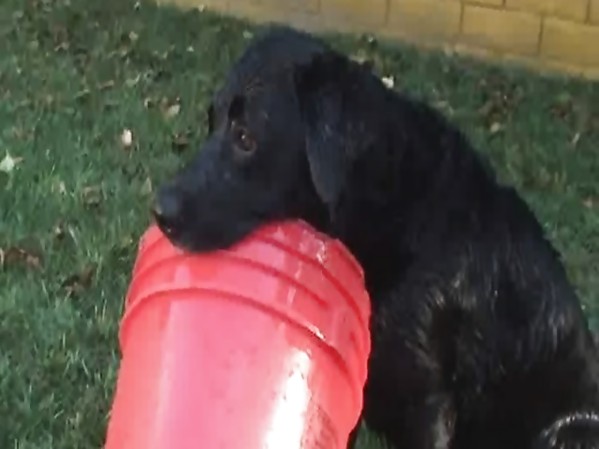 L'AMOUR ENTRE UN CHIEN ET SON SEAU ROUGE
