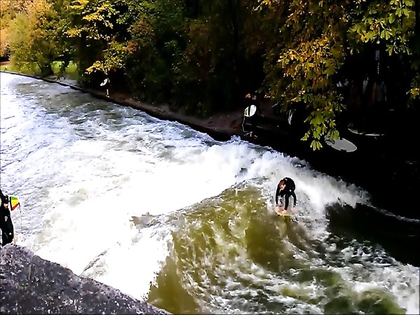 ILS FONT DU SURF SUR UN RIVIÈRE DE MUNICH
