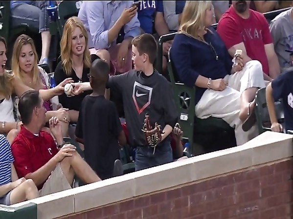 ENFANT DRAGUEUR DONNE UNE BALLE DE BASEBALL LORS D'UN MATCH