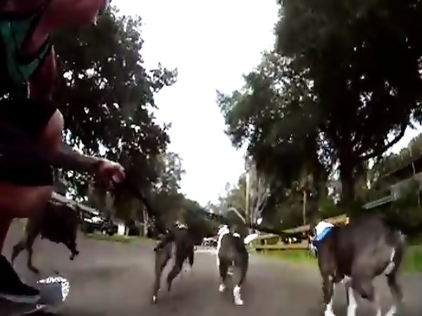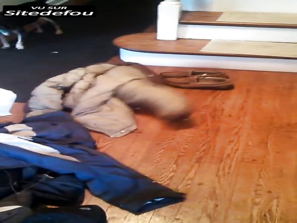 CHIEN COINCÉ DANS LA MANCHE D'UN BLOUSON