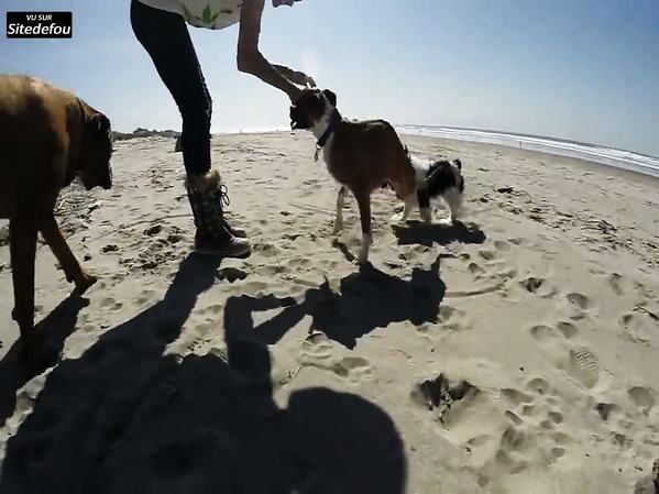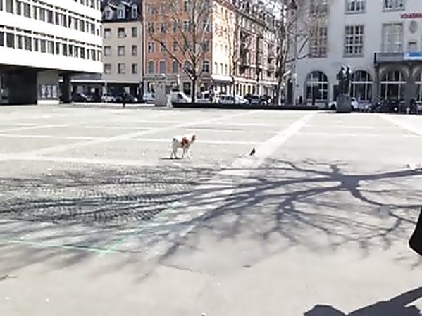 UN CHIEN ESSAYE D'ATTRAPPER UN PIGEON