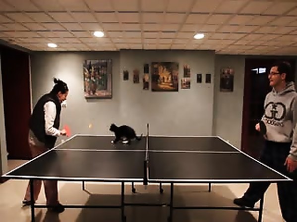 CHAT JOUE AU PING-PONG AVEC SES MAÎTRES