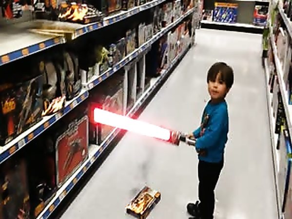 UN ENFANT DÉMOLIT UN RAYON DE SUPERMARCHÉ AVEC UN SABRE LASER