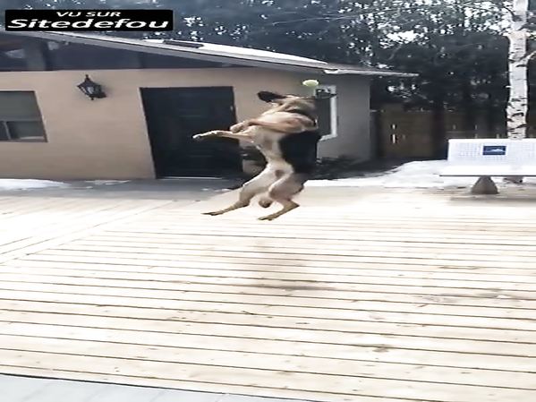 BERGER ALLEMAND ESSAYE D'ATTRAPER UNE BALLE AU RALENTI