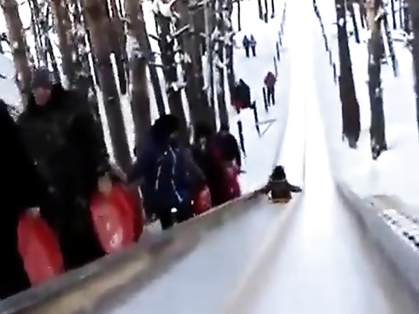 DES ENFANTS S'ÉCLATENT SUR DES TOBOGGANS DE GLACE