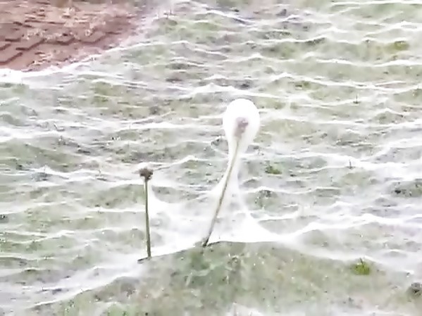 IMPRESSIONNANT: UN CHAMP COMPLÈTEMENT RECOUVERT DE TOILE D'ARAIGNÉE