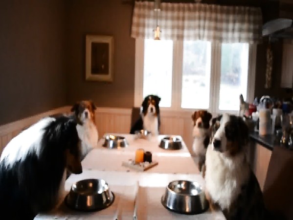 DES CHIENS ATTENDENT LA FIN DE LA PRIÈRE AVANT DE MANGER