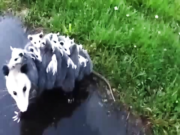 MAMAN OPOSSUM TRANSPORTE 15 BÉBÉS SUR ELLE