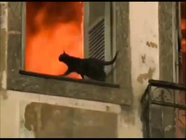 DEUX CHATS S'ÉCHAPPENT D'UNE MAISON EN FEU