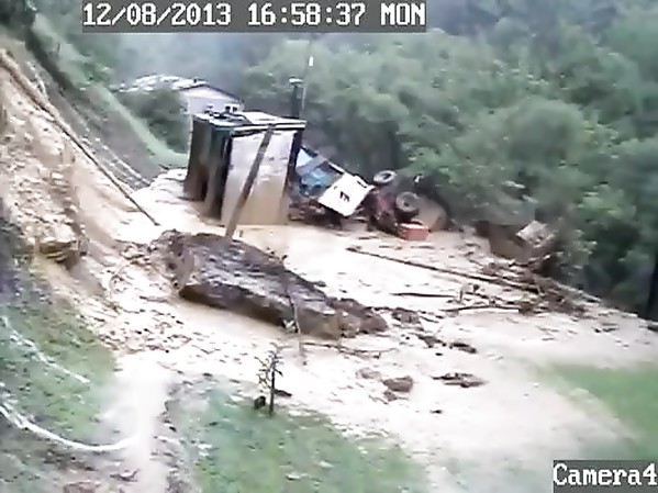 CHIEN MANQUE DE PEU DE SE FAIRE EMPORTER LORS D'UN GLISSEMENT DE TERRAIN