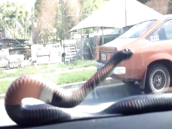 UN SERPENT NOIR À COLLIER ROUGE (VÉNIMEUX MAIS PEU MORTEL) TENTE À TOUT PRIX DE RENTRER DANS UNE VOITURE