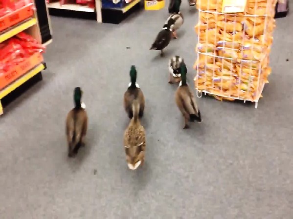 UN MAGASIN REMPLI DE CANARDS APRÈS QUE SON PROPRIÉTAIRE AIT LAISSÉ LA PORTE OUVERTE