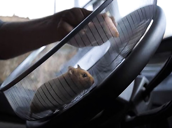 UN HAMSTER CONDUIT UN CAMION POUR PROMOUVOIR LE NOUVEAU SYSTÈME DE DIRECTION ASSISTÉ DE VOLVO (VOLVO DYNAMIC STERRING)