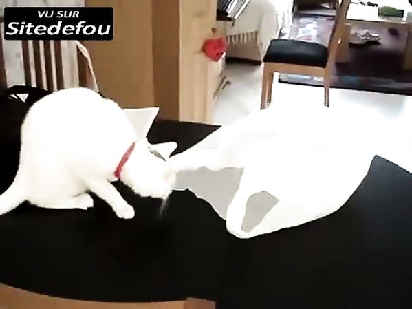UN CHAT TROP CURIEUX ET UN SAC EN PLASTIQUE