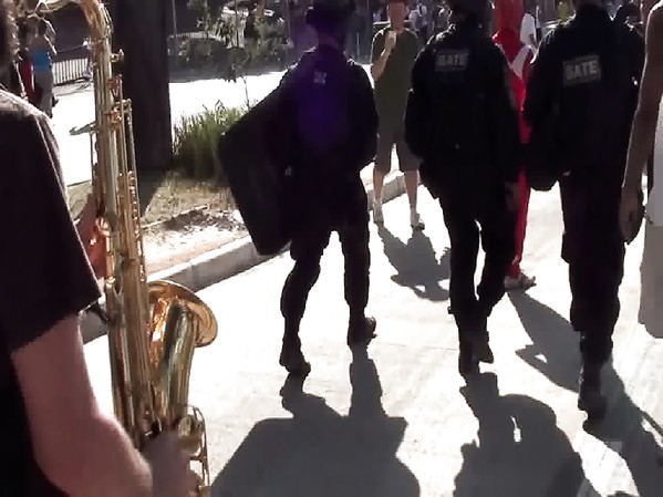 ENORME: UN SAXOPHONISTE ACCOMPAGNE DES POLICIERS BRÉSILIENS DANS LEUR MARCHE