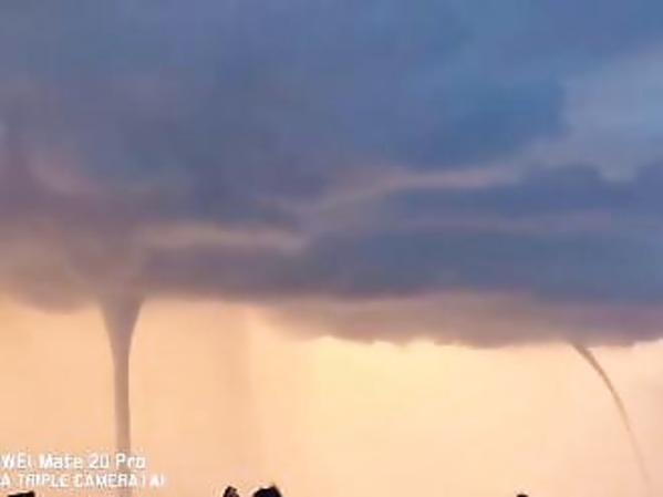 INQUIÉTANT, MAIS MAGNIFIQUE PAYSAGE MÊLANT TROMBES MARINES ET COUCHER DE SOLEIL (PHILIPPINES)