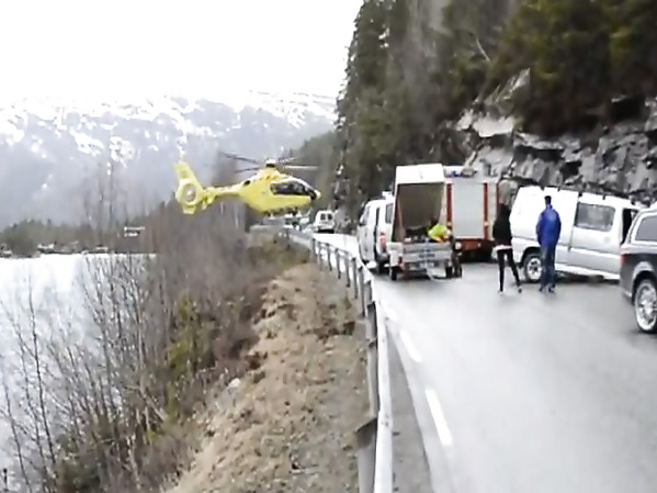 HÉLICOPTÈRE SE POSE EN URGENCE SUR DES RAILS DE SÉCURITÉ LORS D'UN ACCIDENT (NORVÈGE)