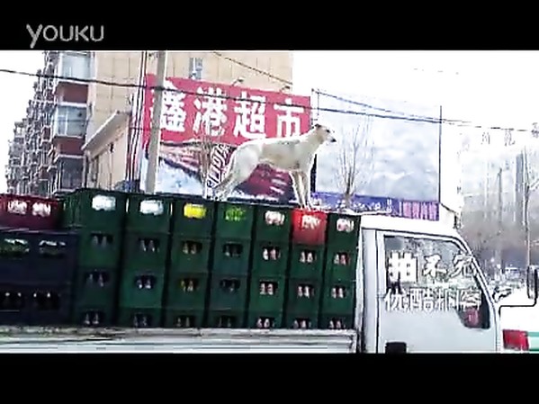UN CHIEN SURVEILLE LE CHARGEMENT DE BIÈRE DE SON MAÎTRE