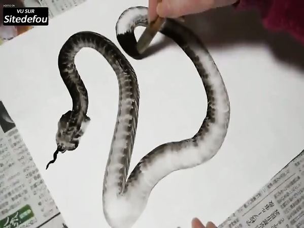 IL DESSINE UN SERPENT À UN SEUL COUP DE PINCEAU !