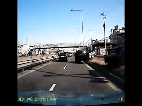 VOITURE PATIENTANT À UN FEU ROUGE, PERCUTÉ PAR UN CAMION TRANSPORTANT DES BOUTEILLES DE GAZ