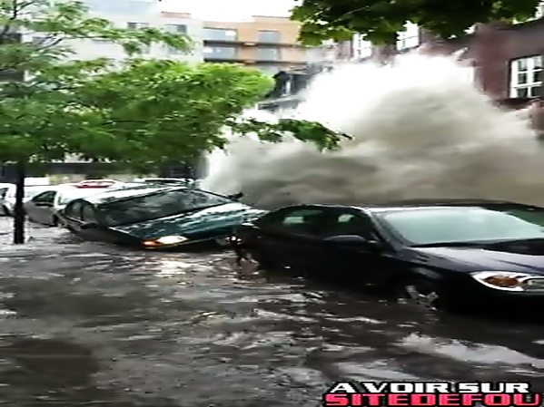 VIOLENTS GEYSER D’ÉGOUT À MONTRÉAL SUITE À DE GROS ORAGES