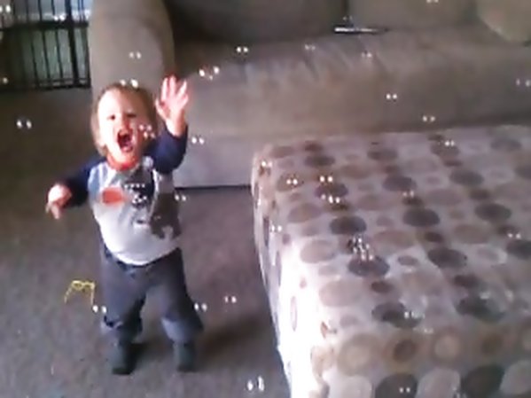 UN GAMIN S'ÉCLATE AVEC DES BULLES