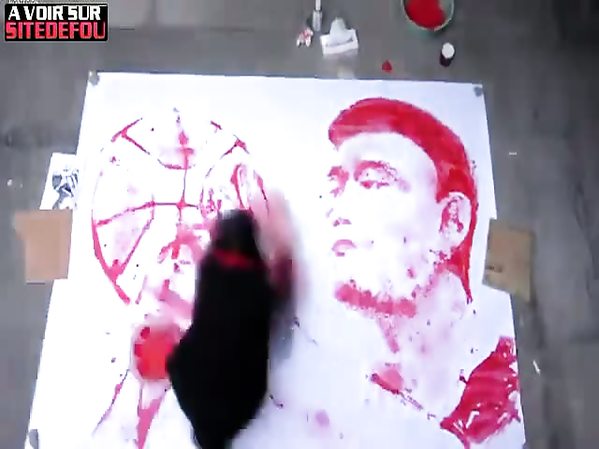 ARTISTE PEINT UNE FRESQUE AVEC UN BALLON DE BASKETBALL
