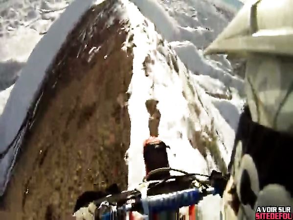 UN FOU EN MOTOCROSS ROULE SUR LE SOMMET D'UNE MONTAGNE