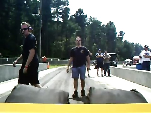 DÉMARRAGE D'UN DRAGSTER VU DE DERRIÈRE