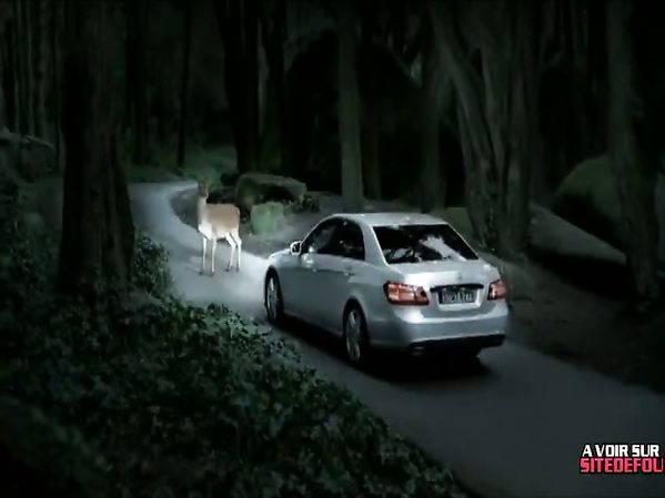 NOUVELLE PUB POUR MERCEDES : LORSQU'UN AUTOMOBILISTE RENCONTRE UN BICHE DANS LA NUIT