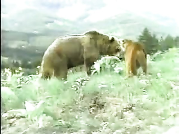 UNE FEMELLE COUGAR PROTÈGE SA PROGÉNITURE D'UN GRIZZLY