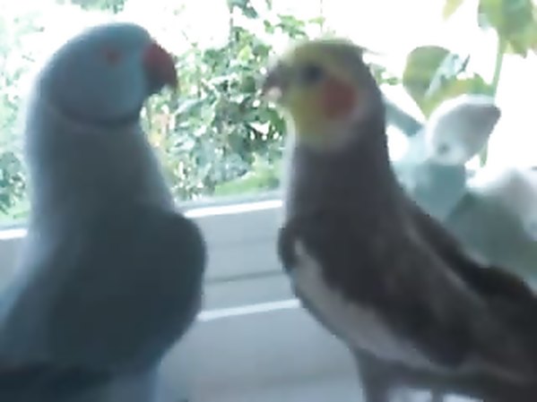 PERROQUET CHERCHE À EMBRASSER UN COCKATIEL