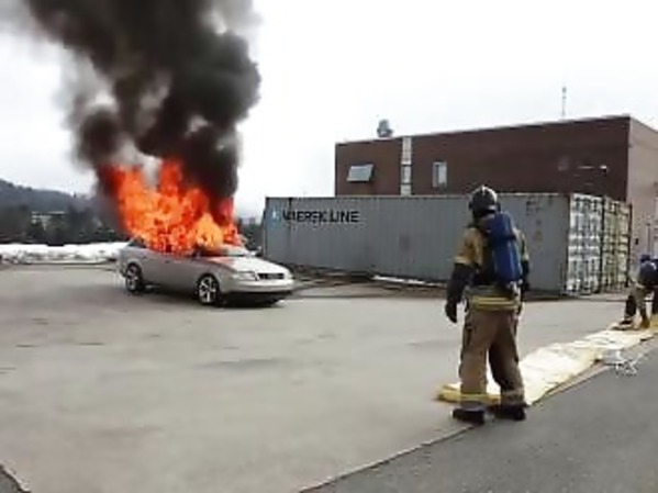 DÉMONSTRATION D’UNE BÂCHE ANTI-FEU SUR UNE VOITURE EN FLAMME
