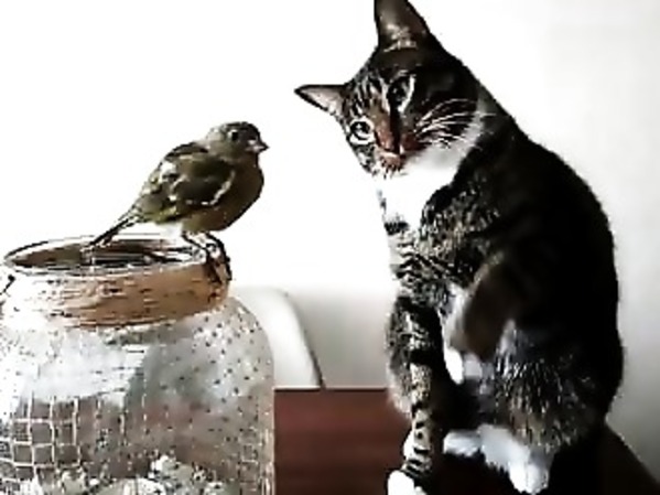 UN CHAT SE MONTRE TRÈS GENTIL AVEC UN OISEAU (ESPAGNE)