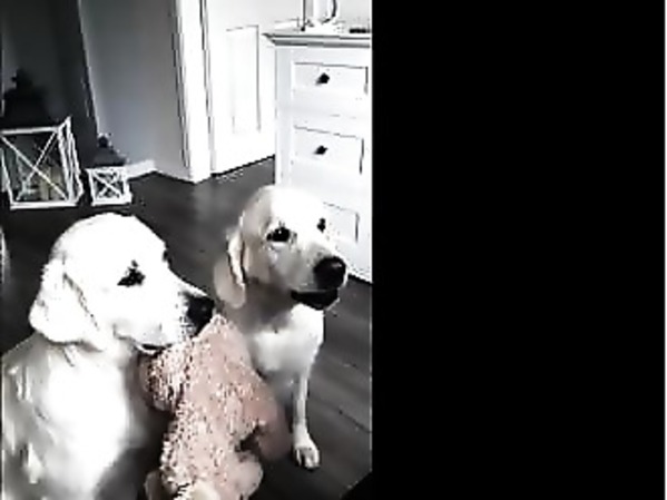 POUR DÉGUSTER DES SUCRERIES, DEUX GOLDEN RETRIEVERS S’AIDENT MUTUELLEMENT