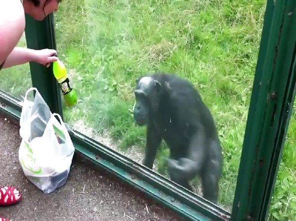 DE FAÇON TRÈS ÉMOUVANTE, UN CHIMPANZÉ DEMANDE DE LA NOURRITURE À LA VISITEUSE D’UN ZOO (PAYS DE GALLES)